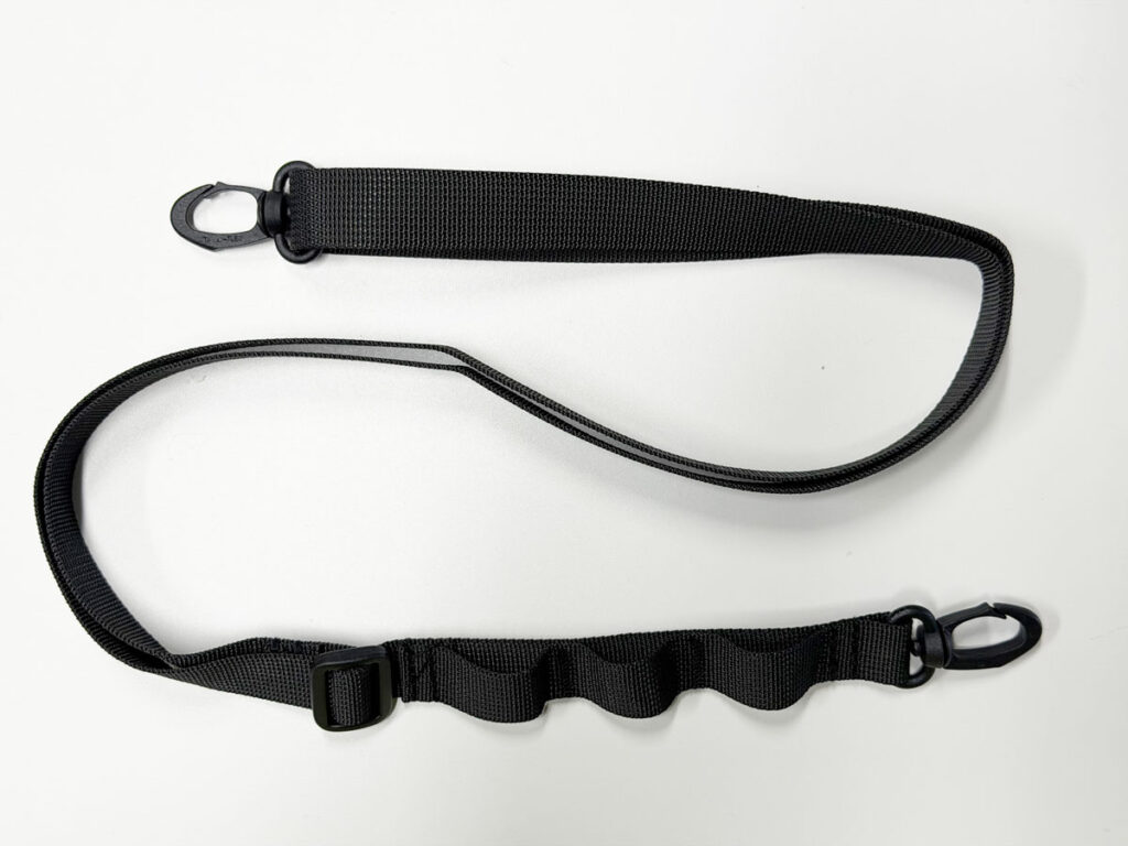 ショルダーベルトはデイジーチェーン付きで、カラビナ等を3ヶ所つけられるようになってます。