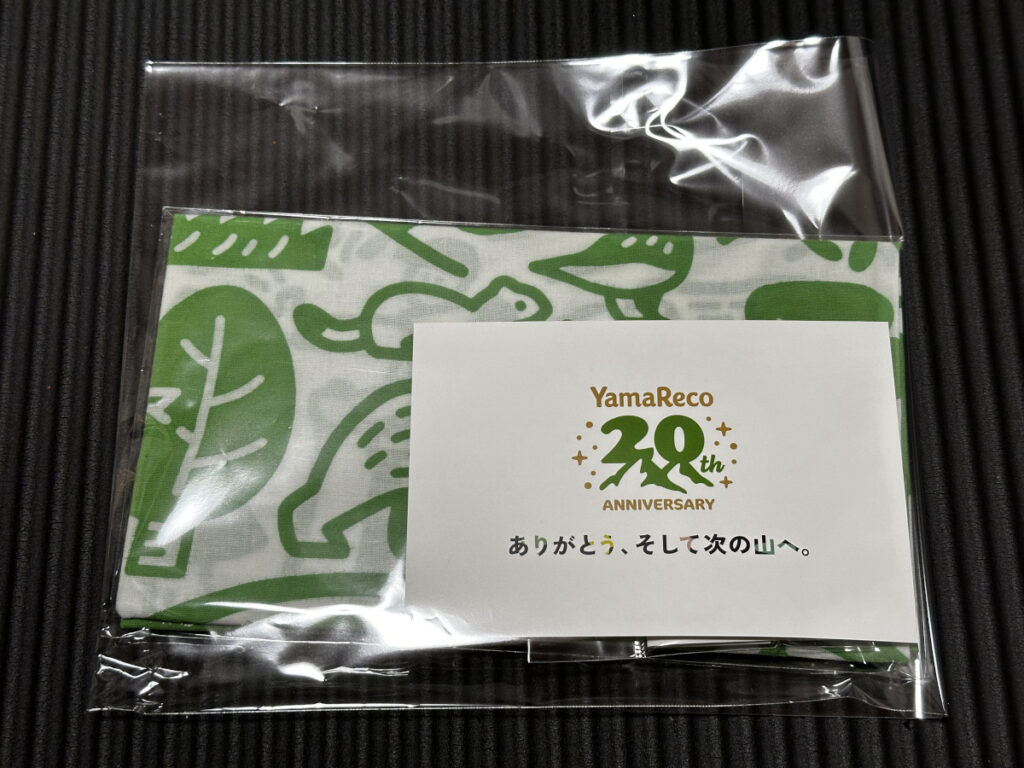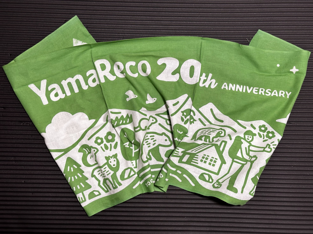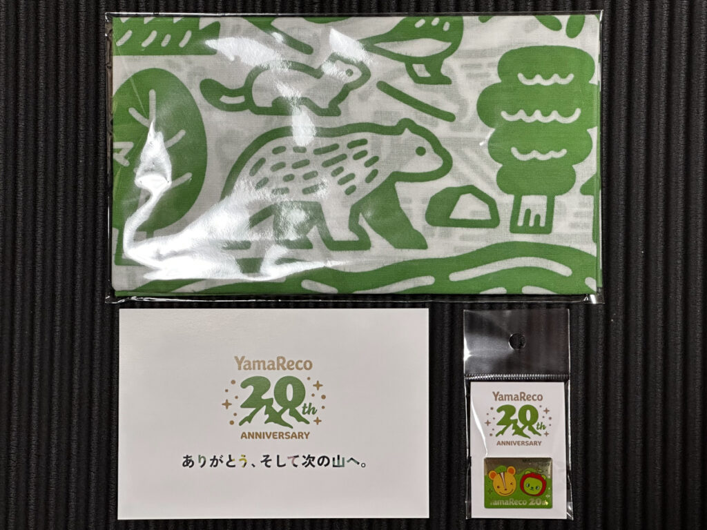 ヤマレコ20周年記念グッズセット「ピンバッチ&手ぬぐい」を記念として購入しました。
