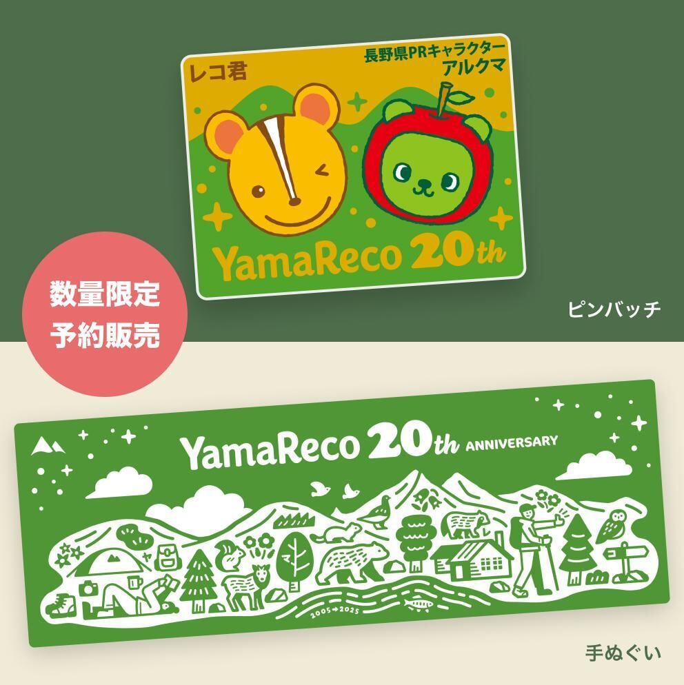 ヤマレコ20周年を記念して、オリジナルピンバッチと手ぬぐいのセットが登場!200セット限定販売!今回だけのスペシャルなアイテムです!〈商品内容〉▲▲ピンバッチ(限定コラボデザイン)▲▲ヤマレコ公式キャラクター「レコ君」と、長野県のPRキャラ...